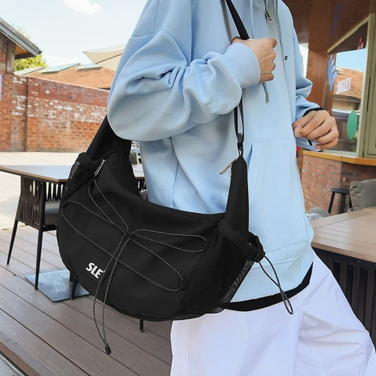 Two-Tone Crossbody Lettering Bag Buckled Flap