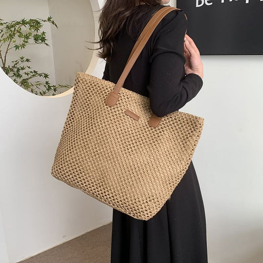 + Crossbody Faux Pearl Drawstring Bag Straw Set: Strap Scarf