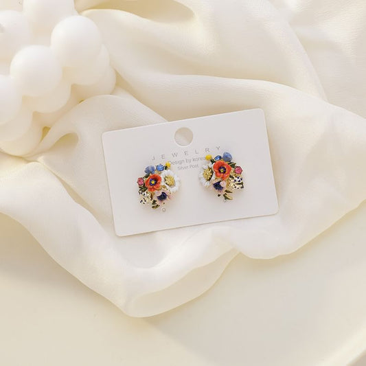 Drop Pearl Flower Earring Rhinestone Clip-On Faux /