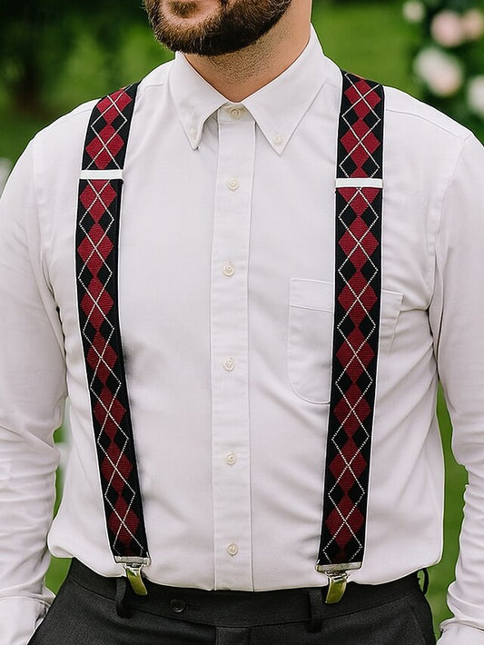 – Suspenders Classic Pattern Clip-On Argyle Men's