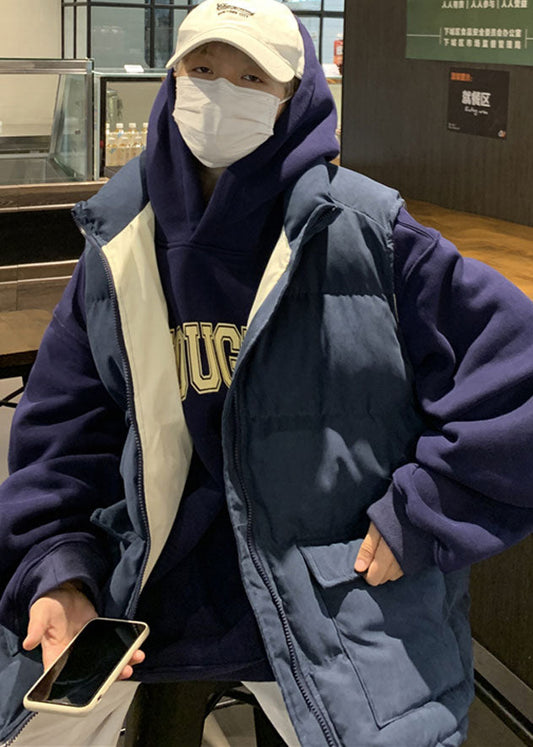 Boutique Navy Oversized Pockets Fine Cotton Filled Men Parkas Winter TK019