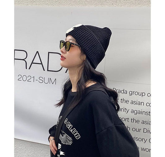 Lettering Applique Knit Beanie