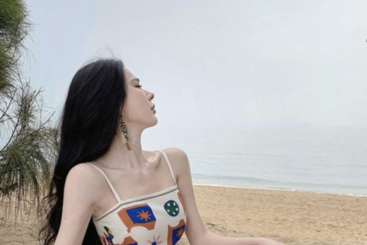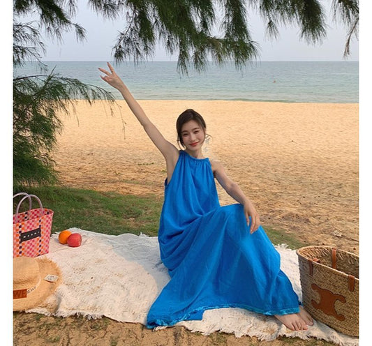 Halter-Neck Two-Tone Paneled Asymmetrical Mini Sundress