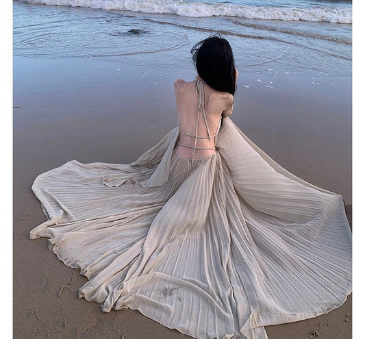 Spaghetti Strap Plain Open Back Shirred Midi Sundress