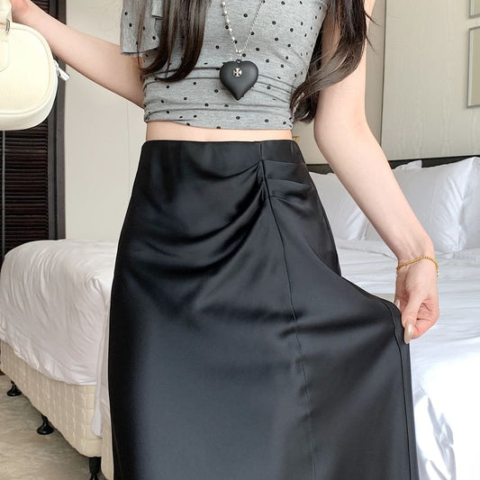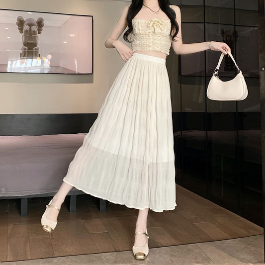Ruffle Skirt Elastic Tiered Trim Plain A-Line Waist