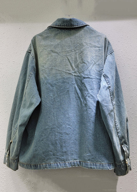 Button New Pan Denim Blue Bow Collar Coat Peter Spring