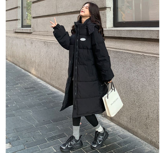 Stand Collar Plain Hood Midi Zip Puffer Coat