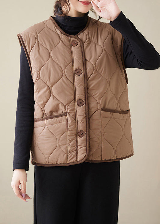 Crew Neck Plain Tweed Button Jacket