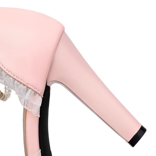 Trim Heel Sandals High Faux Pearl Ruffle
