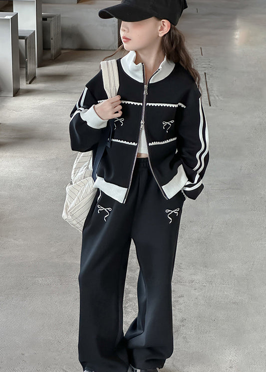 Fashion Pink Striped Zippered Kids Top And Pants Two Pieces Set Spring TR022
