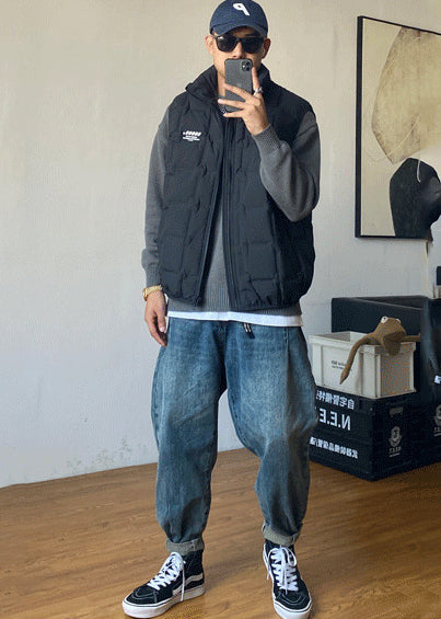 Boutique Black Zip Up Duck Down Men Vests Winter TK018