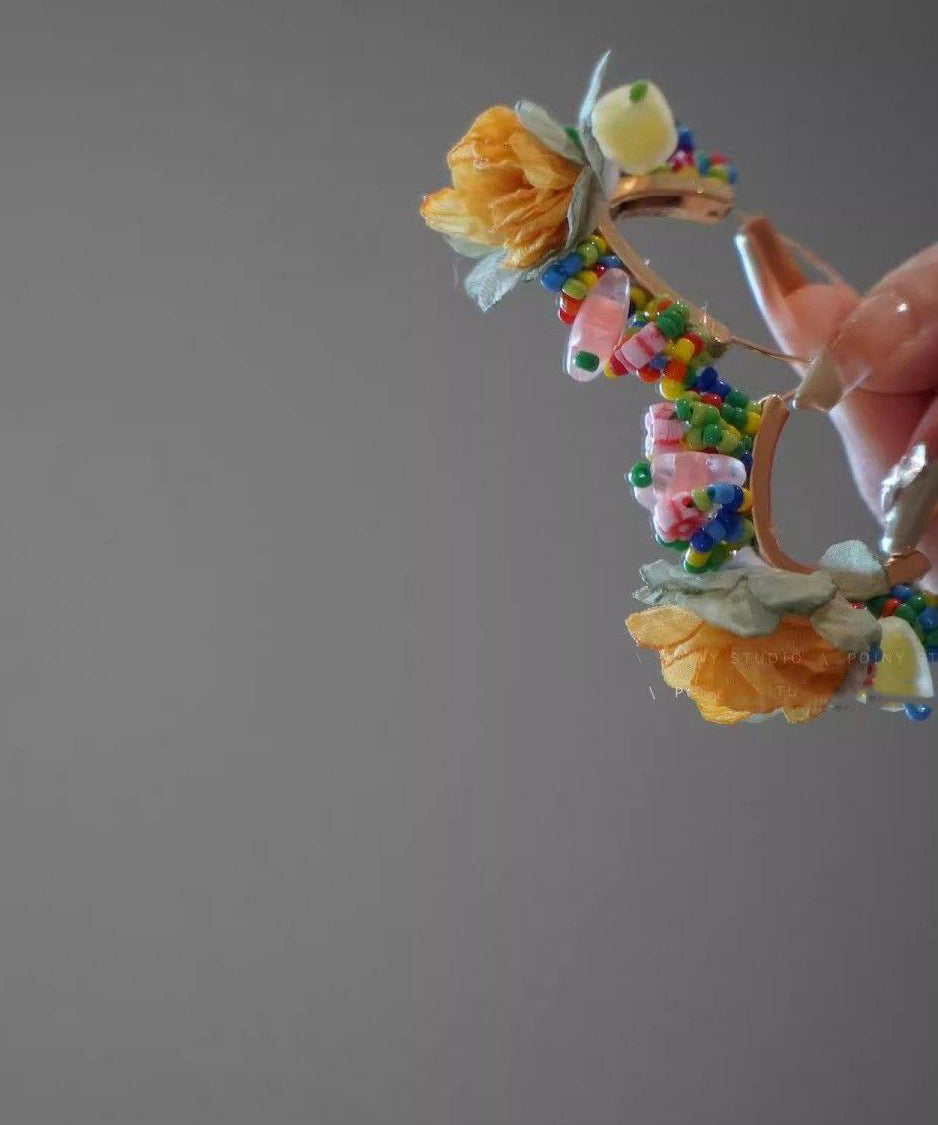 Earrings Design Gold Beads Original Floral Hoop Tulle Copper