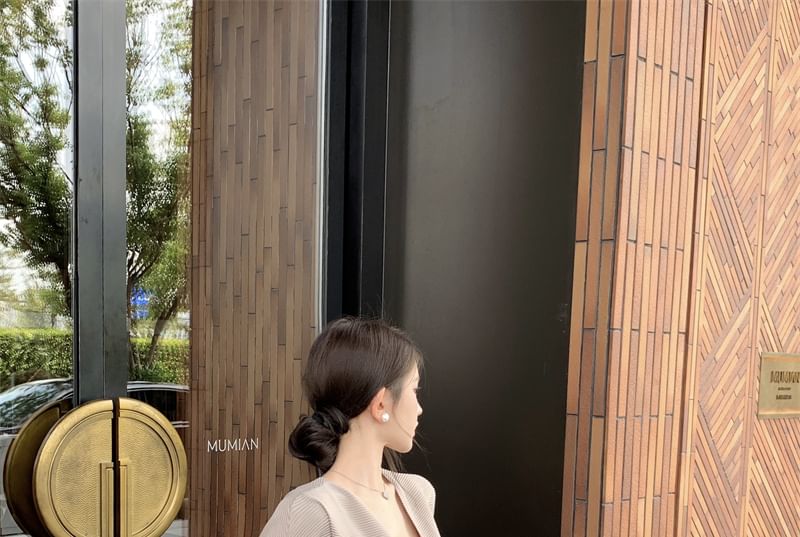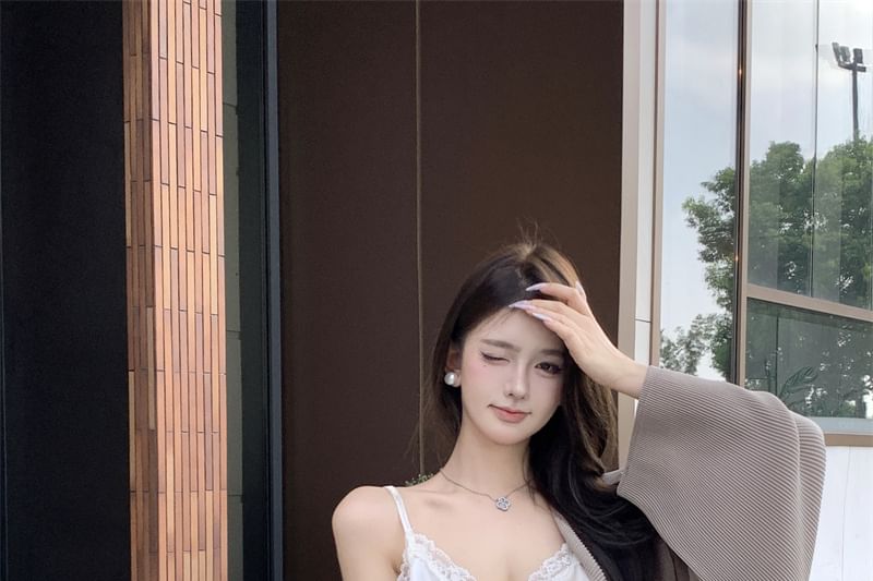 Fringe Skirt Plain Front Camisole Trim Waist Pencil Top Jacket High Open / Lace Maxi V-Neck