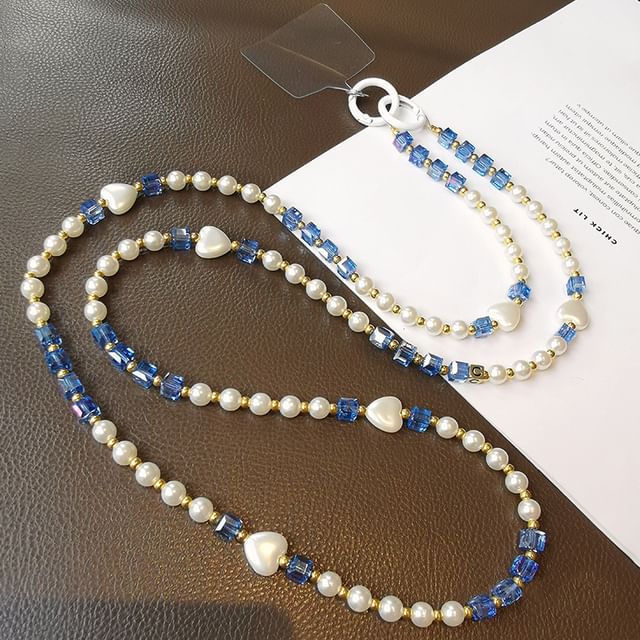 Heart Faux Crystal Phone Lanyard with Lanyard Pad