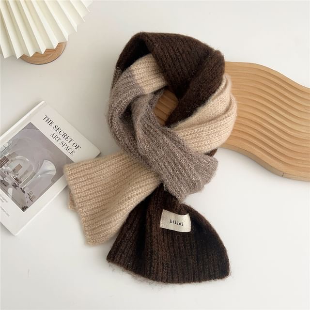 Lettering Applique Color Block Knit Scarf