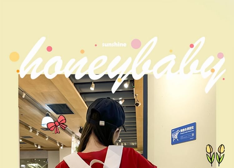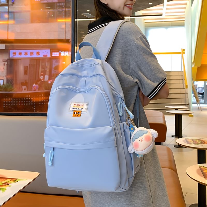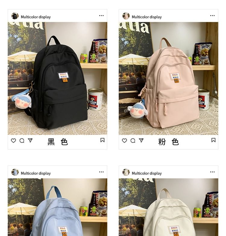 Lettering Applique Nylon Backpack / Bag Charm / Set