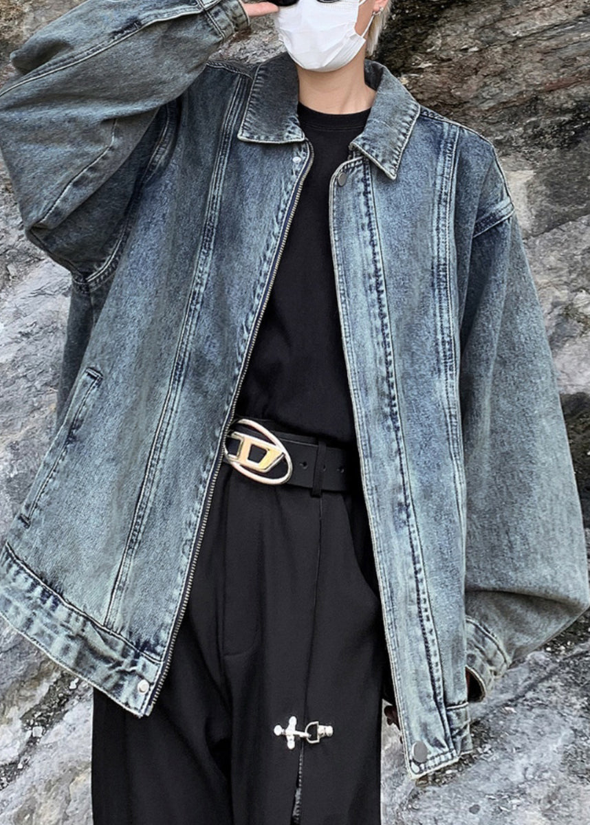 Loose Blue Zip Up Pockets Denim Mens Coats Spring TC039