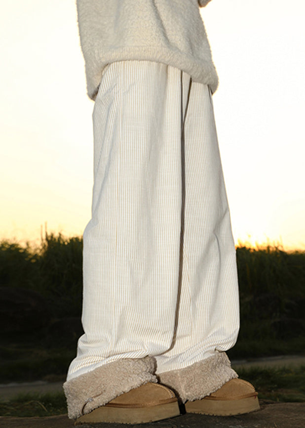 Loose Yellow Pockets Drawstring Warm Fleece Mens Pants Winter RM050