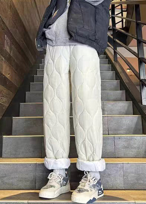 New Black Pockets Drawstring Cotton Filled Men Pants Winter RM032