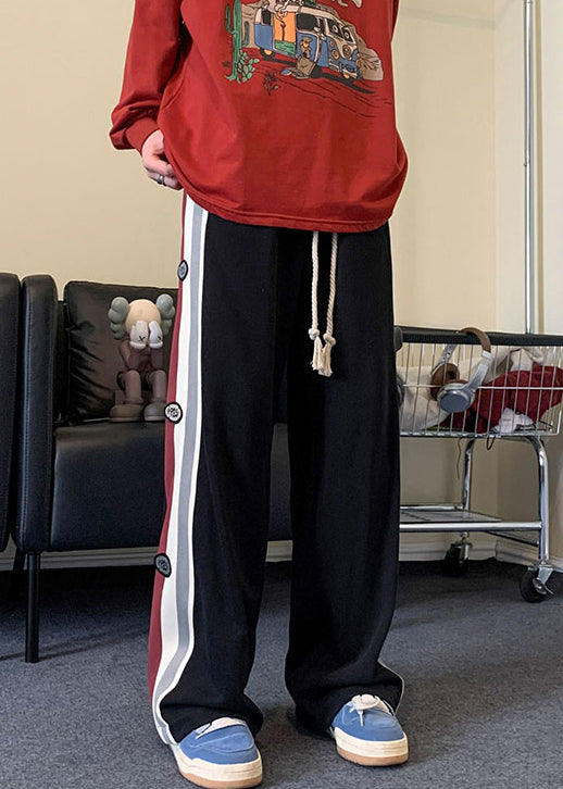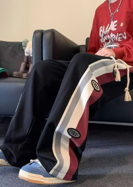 New Black Pockets Elastic Waist Patchwork Warm Fleece Men Pants Fall WA059