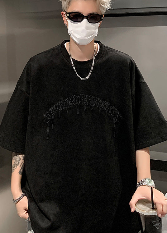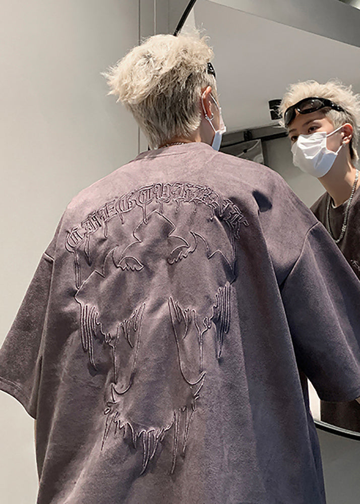New Purple Embroideried Plus Size Cotton Mens T Shirts Summer WA008