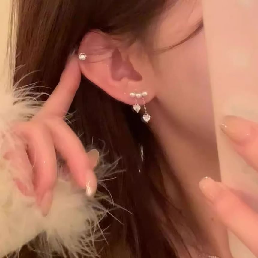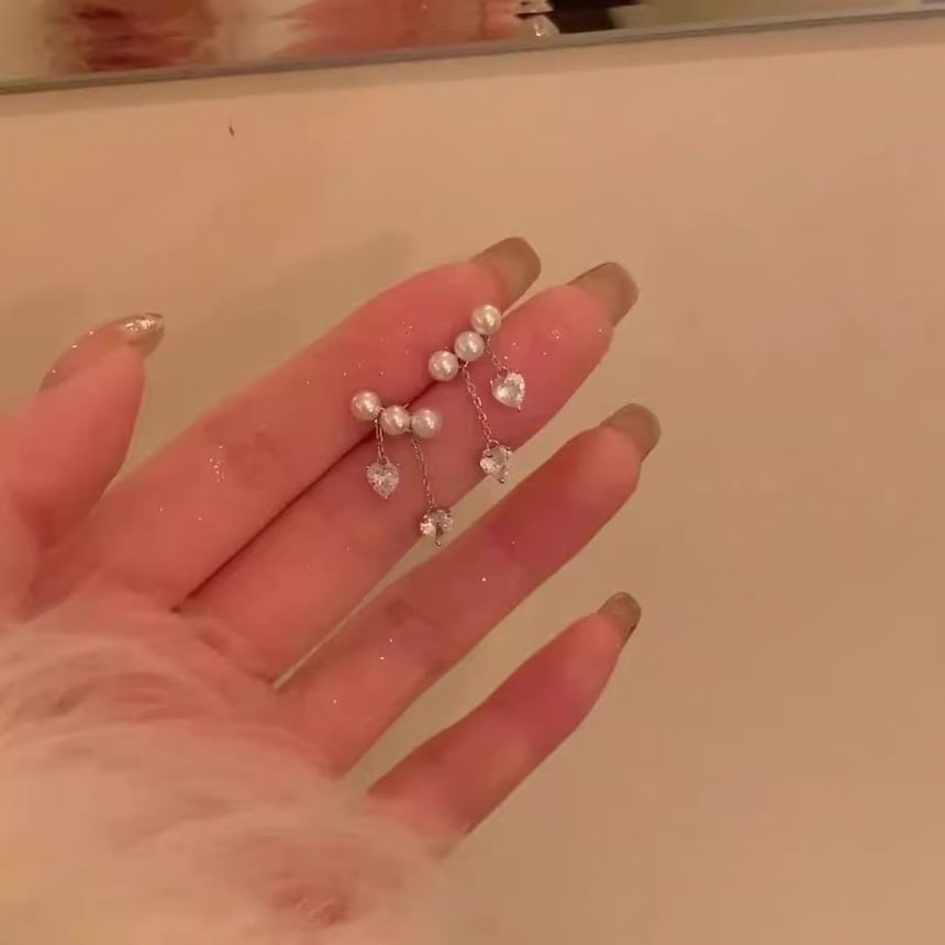 Pearl Heart Dangle Faux Alloy Earring Rhinestone