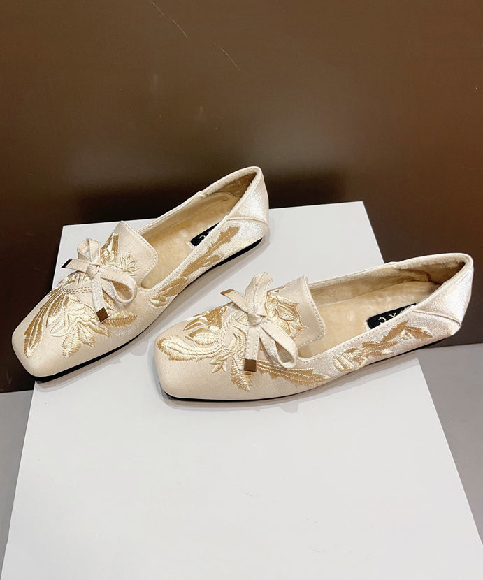 New Retro Black Embroidered Flat Feet Shoes Fuzzy Wool Lined