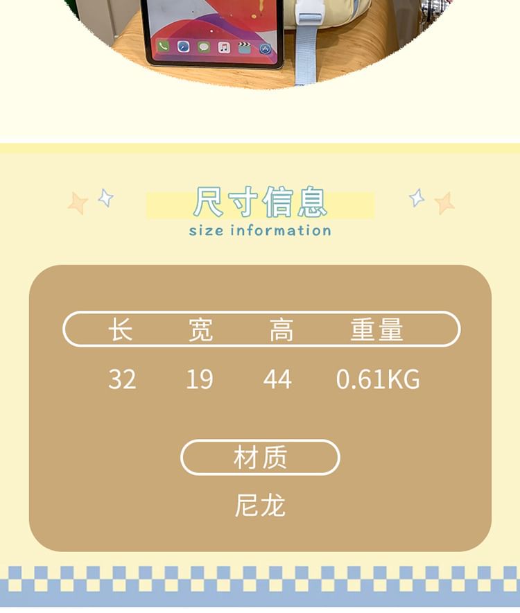 Set Charm Applique Bag Buckled / Nylon Backpack Lettering