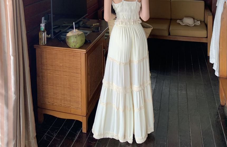 Set: Plain Fringed Crop Cami Top + Elastic Waist Culottes
