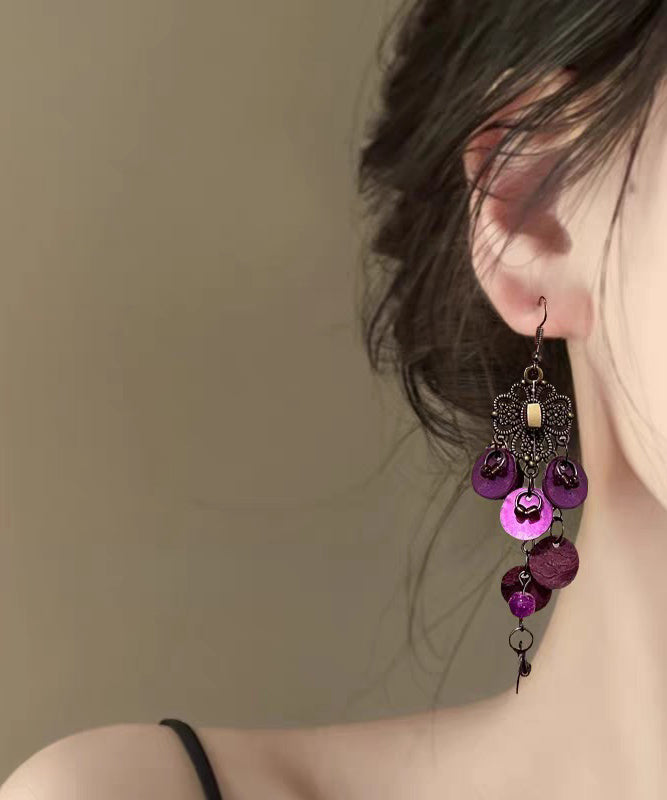 Beach Blue Sterling Silver Shell Hollow Out Tassel Drop Earrings