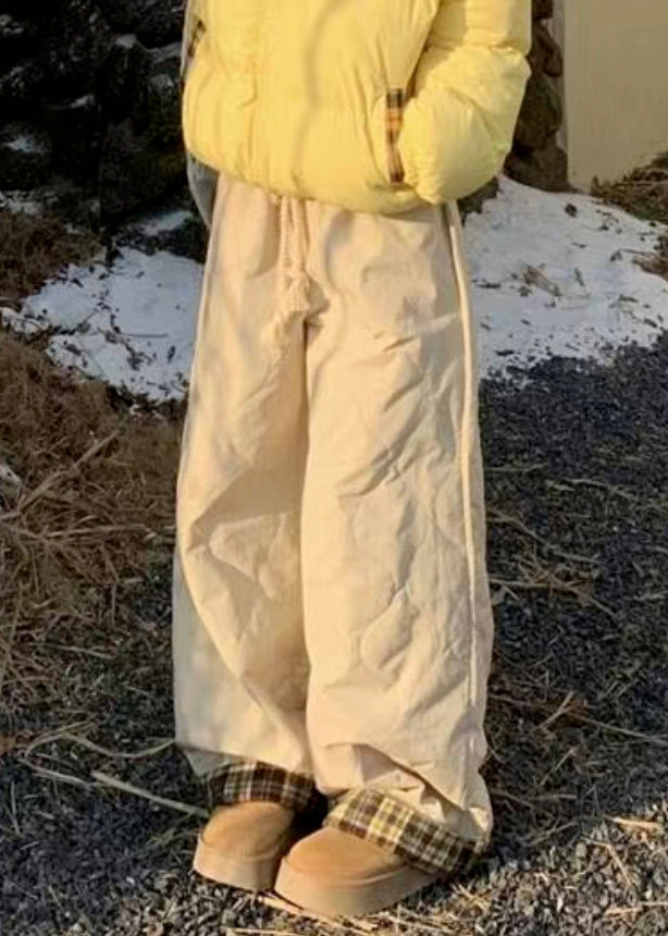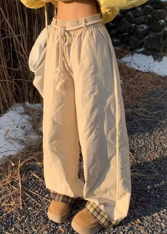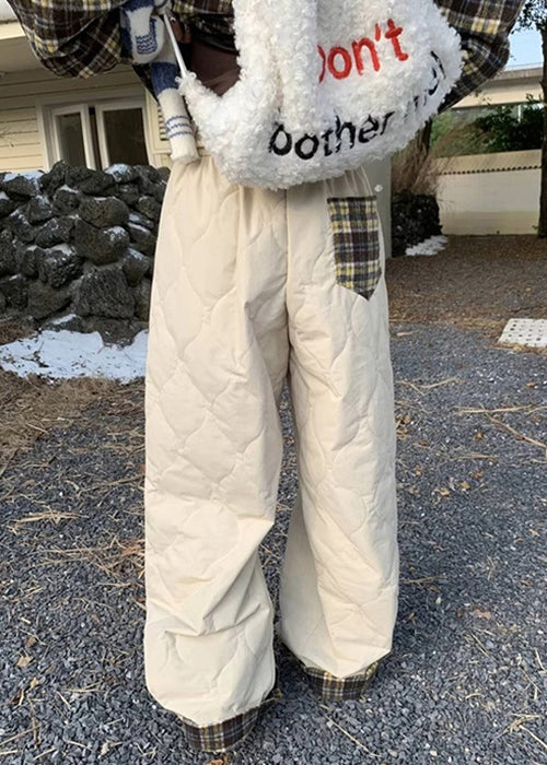 Simple Apricot Plaid Pockets Elastic Waist Mens Pants Winter RM033