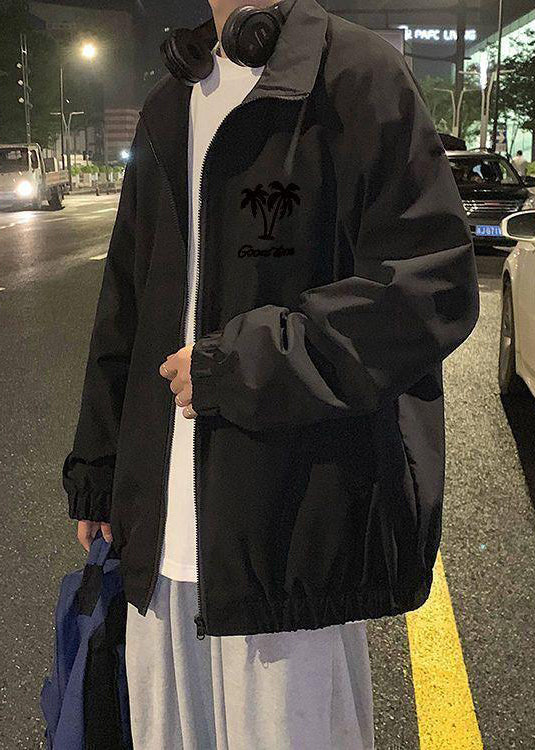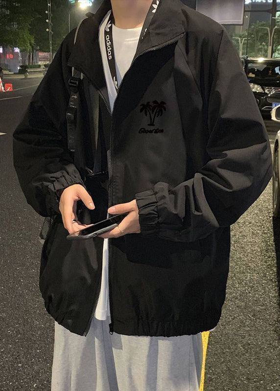 Casual Apricot Stand Collar Zippered Cotton Mens Coats Spring