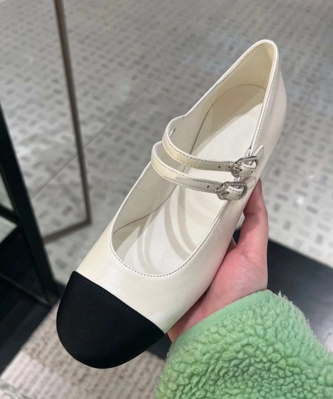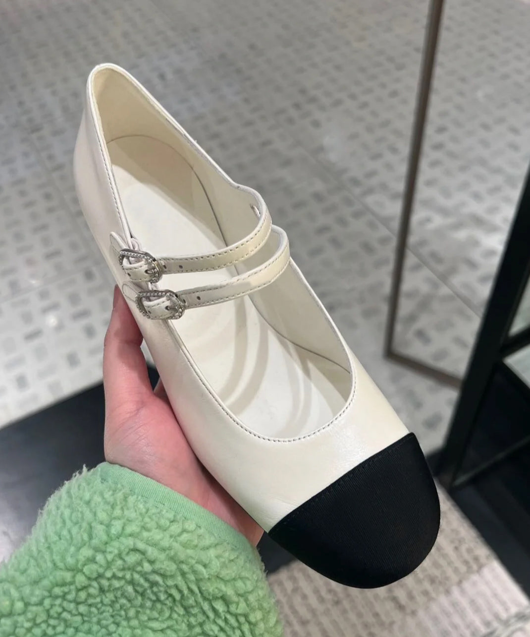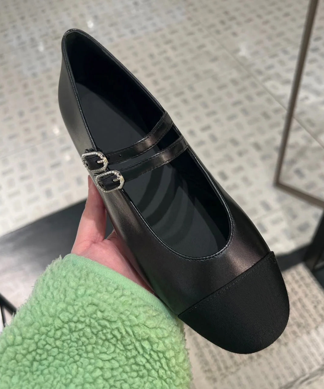 Strap Flat Black Shoes Leather Cowhide Splicing Feet Buckle