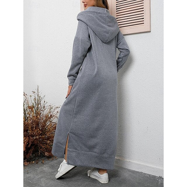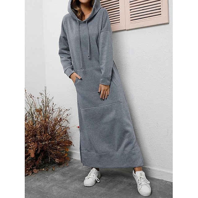 Dresses Type: Hoodie Dress, Casual Dress, Fabric: Polyester, Gender: Women's, Design: Pocket, Occasion: Office, Vacation, Daily, Going out, Style: Fashion, Modern, Fit Type: Loose Fit, Dress Length Type: Midi Dress, Neckline: Hooded, Sleeve Length: Long Sleeve, Elasticity: Micro-elastic, Look After Me: Machine wash, Pattern: Plain, Season: Winter, Fall, Spring,