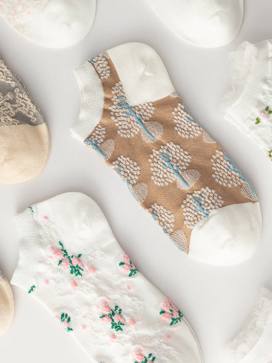 5 Pairs Women Artsy Floral Jacquard Cotton Socks AS1030