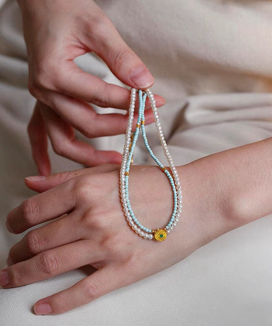 Alloy Beading Handmade Double-Layer Colorblock Pendant Pearl