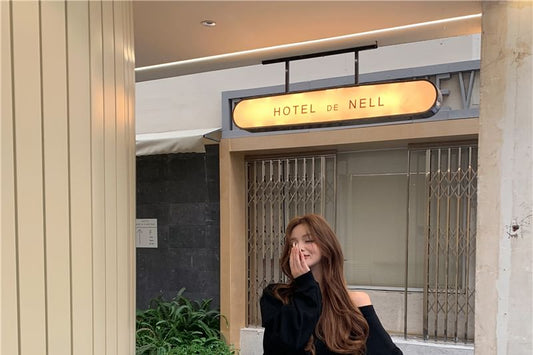 / Drawstring Waist Pullover Trim Plain Contrast Off-Shoulder