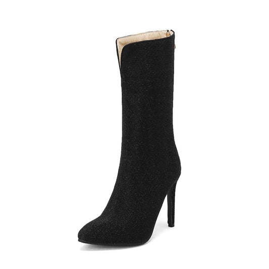 Stiletto Pointed Toe Plain Faux Leather Tall Boots
