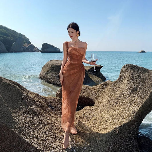 Sweetheart Maxi Ruched Strap Neck Dress Plain Spaghetti Sheath