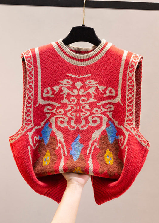 Jacquard Navy O Neck Cozy Knit Vest Sleeveless YJ011