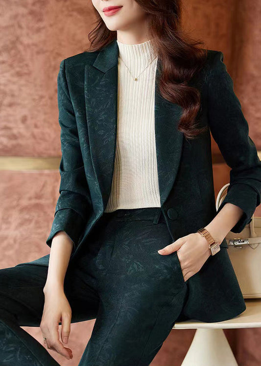 Style Blackish Green Print Silm Fit Cotton Coat Spring YJ022