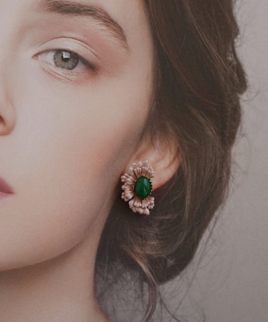 Stud Cute Earrings Pink Floral Glaze Copper Drip
