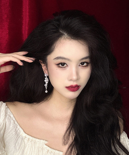 Zircon Pearl White Stergild Classy Drop Silver Earrings