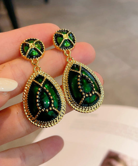 Classy Blackish Green Sterling Silver Overgild Enamel Water Drop Drop Earrings QZ020
