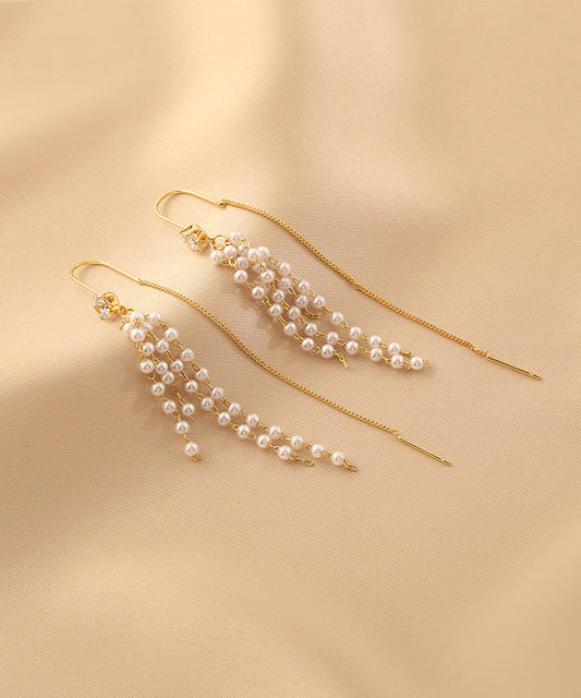 Fashion Gold Sterling Silver Alloy Pearl Tassel Drop Earrings QZ011
