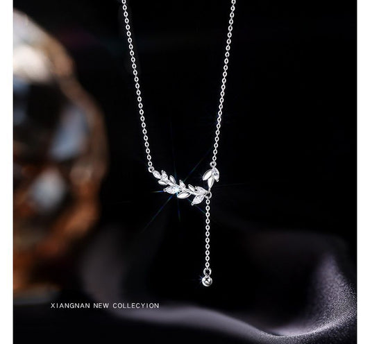 Vintage Coffee Alloy Zircon Crystal Leaves Pendant Necklace QZ019