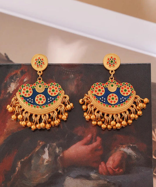 Retro Blue Antique Gold Enamel Tassel Drop Earrings QJ035