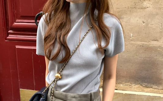 Short-Sleeve Mock Neck Plain Ribbed T-Shirt