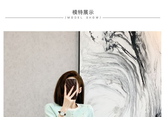 Lolita Puff-Sleeve Ruffle Trim High Neck Plain Sweater