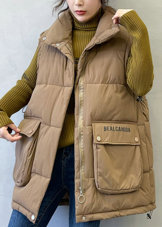Loose Coffee Zip Up Letter Pockets Cotton Filled Waistcoat Sleeveless YW010